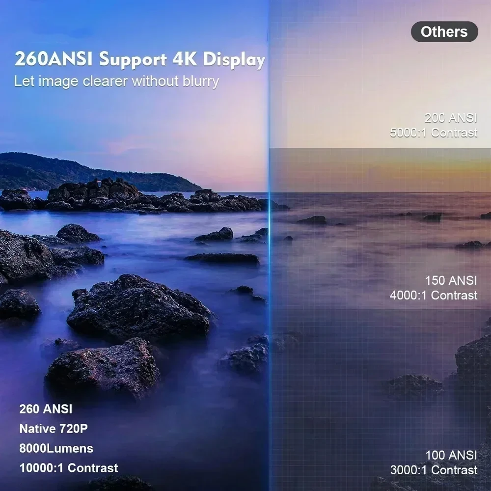 ——Native 1280 * 720P resolution, supports 4K 260 ANSI, built-in 5W HIFI speaker